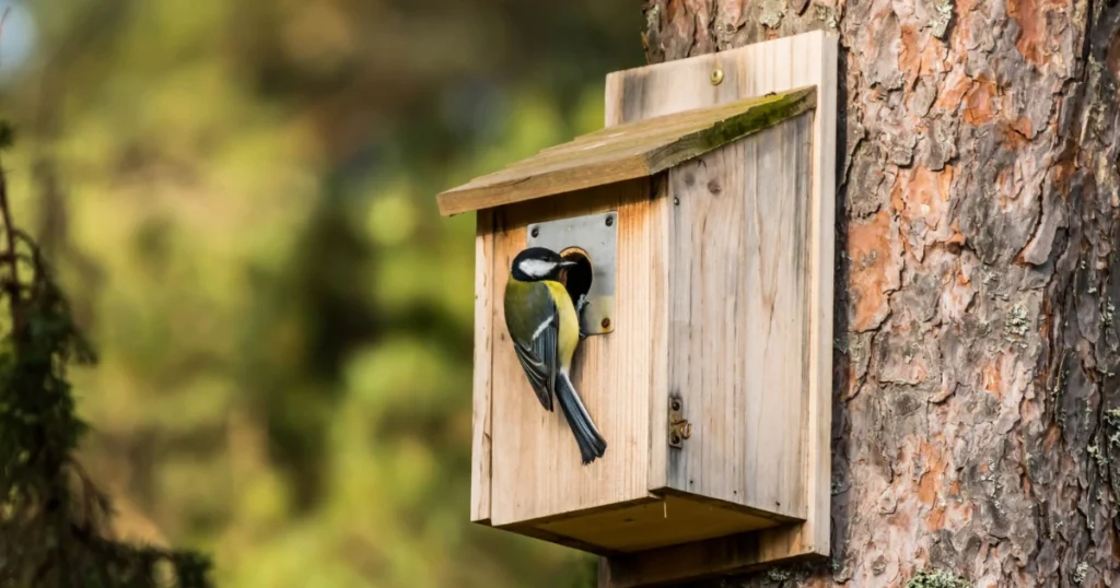 Ein geschützter Standort mit guter Sicht und in der Nähe von Pflanzen ist optimal. So fühlen sich Vögel sicher.